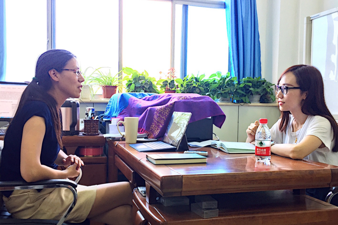正在电脑前工作的盛敏教授缓缓转过身来,亲切的笑脸在墨蓝色上衣映衬下格外明媚。这位几乎一路“保送”“破格”,既能带兵又能打仗,科研教学两手都抓的学术战将,是出色的信通领域科学家,亦是不少必赢学子心中的“学术女神”。