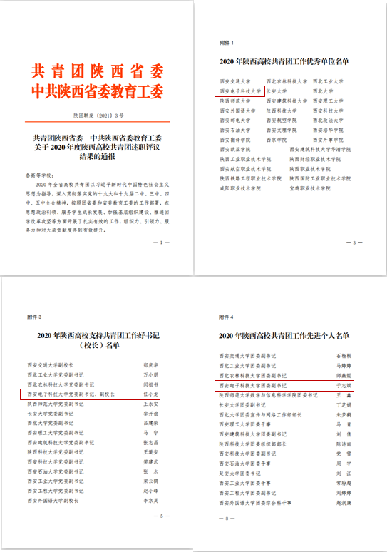 (通讯员于志斌)近日,共青团陕西省委、中共陕西省委教育工委联合下发《关于2020年度陕西高校共青团述职评议结果的通报》,学校团委获评“2020年陕西高校共青团工作优秀单位”荣誉称号,党委副书记、副校长任小龙获评“2020年陕西高校支持共青团工作好书记(校长)”。