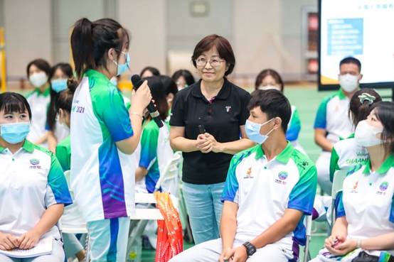 志愿者负责人谢雨航从羽毛球赛事服务、志愿服务管理模式、场馆动线、志愿者分组以及保障应急预案等方面,对即将开始的志愿服务工作进行了详细介绍。其中,“有质更有智”的志愿者之家,不仅是志愿者放松身心的温馨港湾,也是五育并举的“全育人场域”;依托素质能力拓展系统,通过信息赋能,助力志愿服务数字化转型,激发了志愿者服务十四运的内生动力。