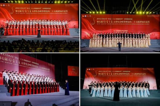 人文学院中华人文艺术传唱团,外国语学院、经济与管理学院、生命科学技术学院联队“生声不息,经外传奇”合唱团,计算机科学与技术学院“计”扬青春合唱团,物理学院、数学与统计学院联队“数大物博”合唱团