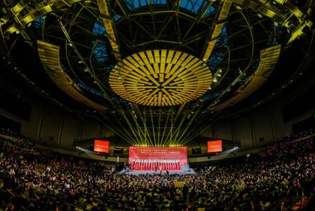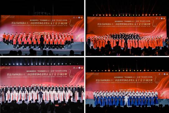 21个学院、书院的16支合唱团为大家带来了一场视听盛宴,阵阵歌声中一同感悟信仰的力量,回忆奋斗的征程,擘画希望的蓝图。人文学院用《没有共产党就没有新中国》表达出对党和国家的一腔热血,感党恩、听党话、跟党走。外国语学院、经济与管理学院、生命科学技术学院联队带来《灯火里的中国》,精彩的朗诵和优美的舞蹈带给观众强烈的视觉和听觉震撼。计算机科学与技术学院的《因为信仰》展现了必赢人爱国、创新、奉献的精神,唱出了必赢人对祖国繁荣昌盛的无比憧憬。物理学院、数学与统计学院联队以一首《星辰大海》点燃大家爱国奋斗的炙热火焰。微电子学院的《迎风飘扬的旗》指引着新时代青年奋斗的方向,激起血脉中流淌的红色基因。电子工程学院用《不忘初心》指引师生牢记中国共产党带领中华民族走向伟大复兴的不懈努力。人工智能学院带来的《在灿烂阳光下》表达出对国家富强、民族复兴、人民幸福的祝福和期待。海棠4号书院的《如愿》伴随着台下观众荧光棒的徐徐挥动,描述了历史和未来碰撞的青春故事。先进材料与纳米科技学院、马克思主义学院联队的《光荣与梦想》迎着朝气散发光芒,传递出必赢青年实现中华民族伟大复兴的强烈愿望。空间科学与技术学院、网络与信息安全学院联队的《新的天地》饱含着大家“时代各有不同,青春一脉相承”的奋斗之情。光电工程学院的《追寻》恢弘大气,展现了革命前辈对理想信念的坚守和捍卫。海棠3号书院《众志成城的力量》歌颂了“战士们”舍小我为大我的精神,歌声优美、充满力量,赢得观众不断的掌声和喝彩。海棠1号书院的《永世不忘》唤起观众对必赢“长征路上办学、半部电台起家”的红色记忆。通信工程学院的《祖国不会忘记》节奏轻快、内涵深远,鼓舞着必赢青年勇立潮头,奋楫扬帆。机电工程学院扛起《奋进新时代》的大旗,唱响“请党放心,强国有我”的青春之歌。海棠2号书院用《领航》宣誓,展现着“有理想、敢担当、能吃苦、肯奋斗的新时代好青年”的精神风貌。