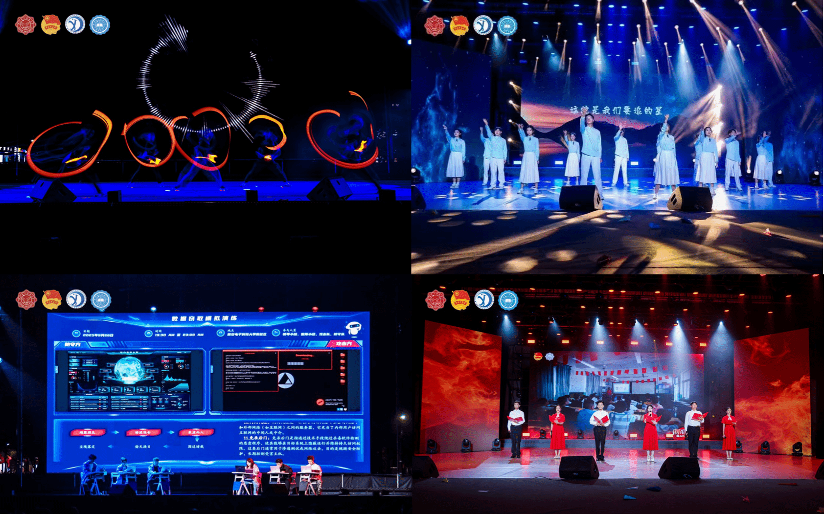 晚会聚焦青春与梦想,为新生们展示追逐梦想的广阔天地。《青春的誓言》社团成员们倾情演绎大学生活的无限可能。《向祖国报告》大学生艺术团朗诵与主持人团以朗诵形式展现必赢人矢志不渝的科技报国情怀。《夜空中最亮的星》大学生艺术团合唱团用温暖的歌声传递对科技工作者的敬意,激励同学们勇攀科学高峰。《网安攻防战》信息网络技术中心通过现场模拟钓鱼攻击事件,为同学们敲响网络安全警钟;陕西省魔术家协会理事屈捷与MiracleMiracle魔术社学生共同演绎魔术《奇迹时刻》《祝愿》,介四相声社带来的《打灯谜》将欢声笑语带给全场。夏天音乐社、大学生艺术团、TON乐团及校歌赛十强歌手轮番登台,从深情的乐队演奏到充满故事感的独唱,每首歌都引起共鸣,引发大合唱。来自IDOL舞社、B-Force街舞社、Shining动漫社的同学们,把年轻的朝气洒满舞台,感染着台下每一颗跳动的心脏,令台下尖叫不断。这些节目各具特色,共同构成这场主题鲜明、创意无限的迎新晚会,为新生们开启充满希望与梦想的大学生活新旅程。